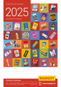 Commandes | Bestellungen www.margot.ch 2025 Assortiment | Sortiment À partir de mars | Ab März Lundi – Jeudi (Vendredi) | Montag – Donnerstag (Freitag) 7 h 00 –12 h 00 + 13 h 30 –16 h 30 (16 h 00) T 021 967 30 40 F 021 967 30 41
